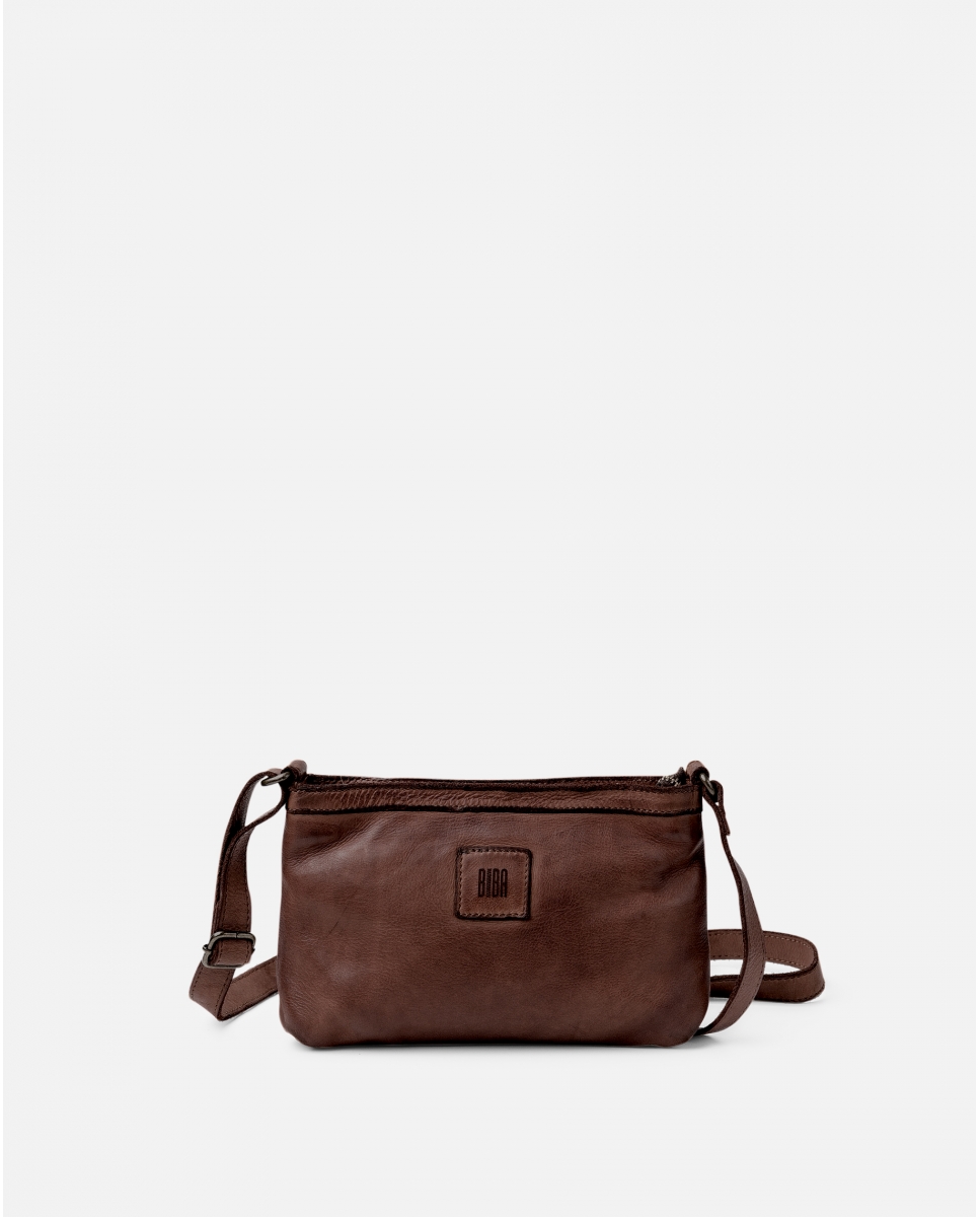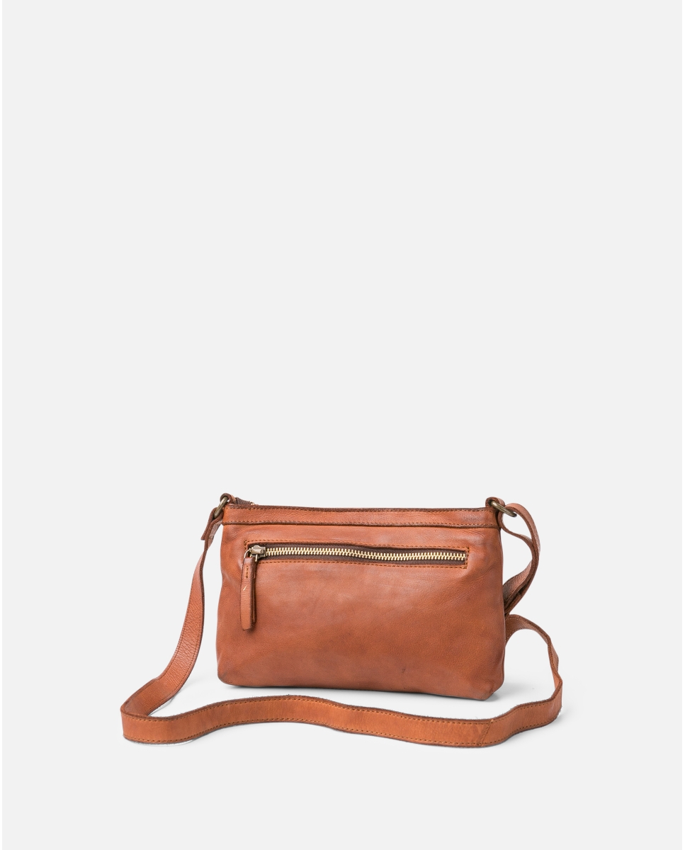 Mini bolso bandolera de piel vacuna lavada. Cierre con cremallera. Bandolera regulable. Bolsillos externos e internos. Forro de algodón.