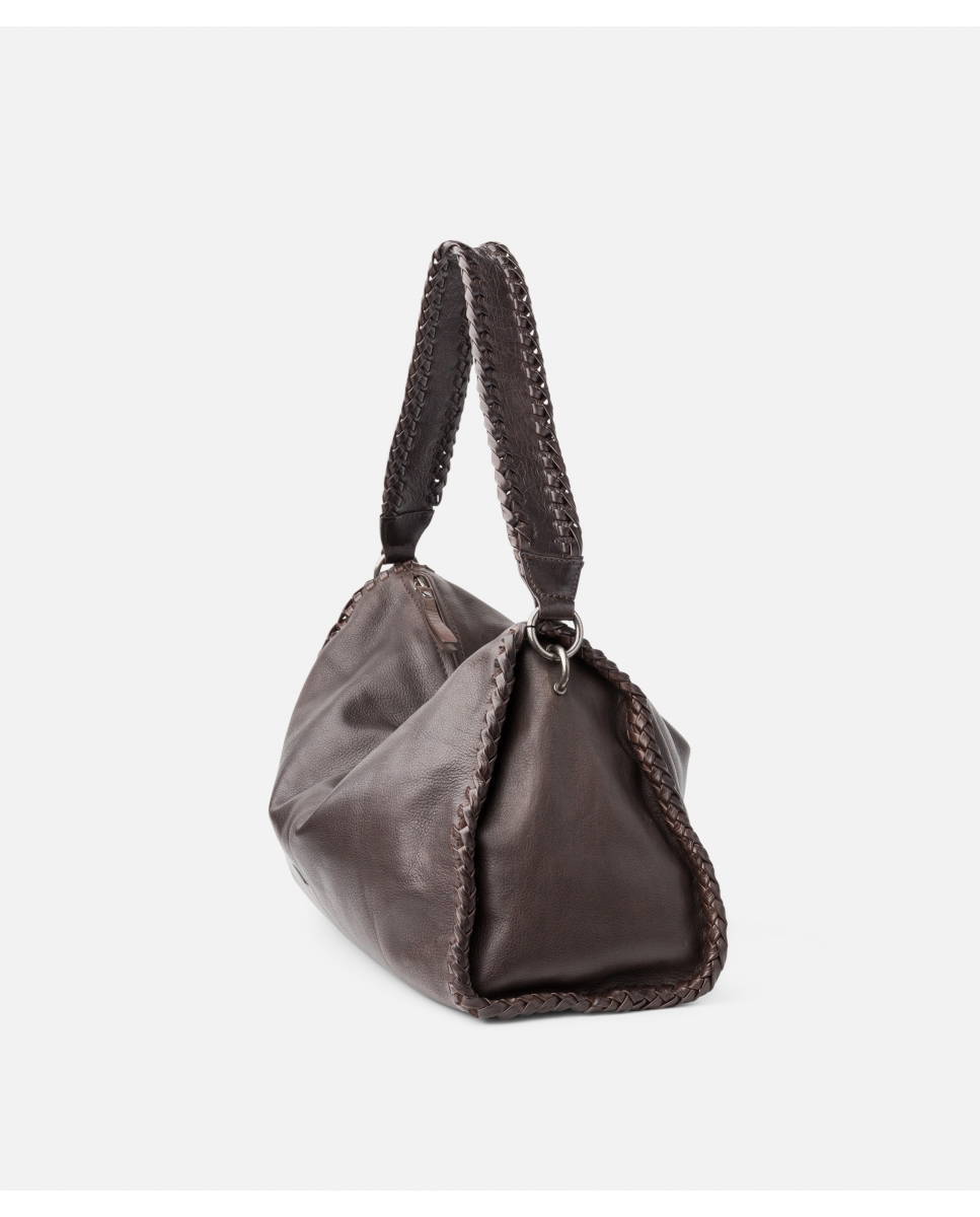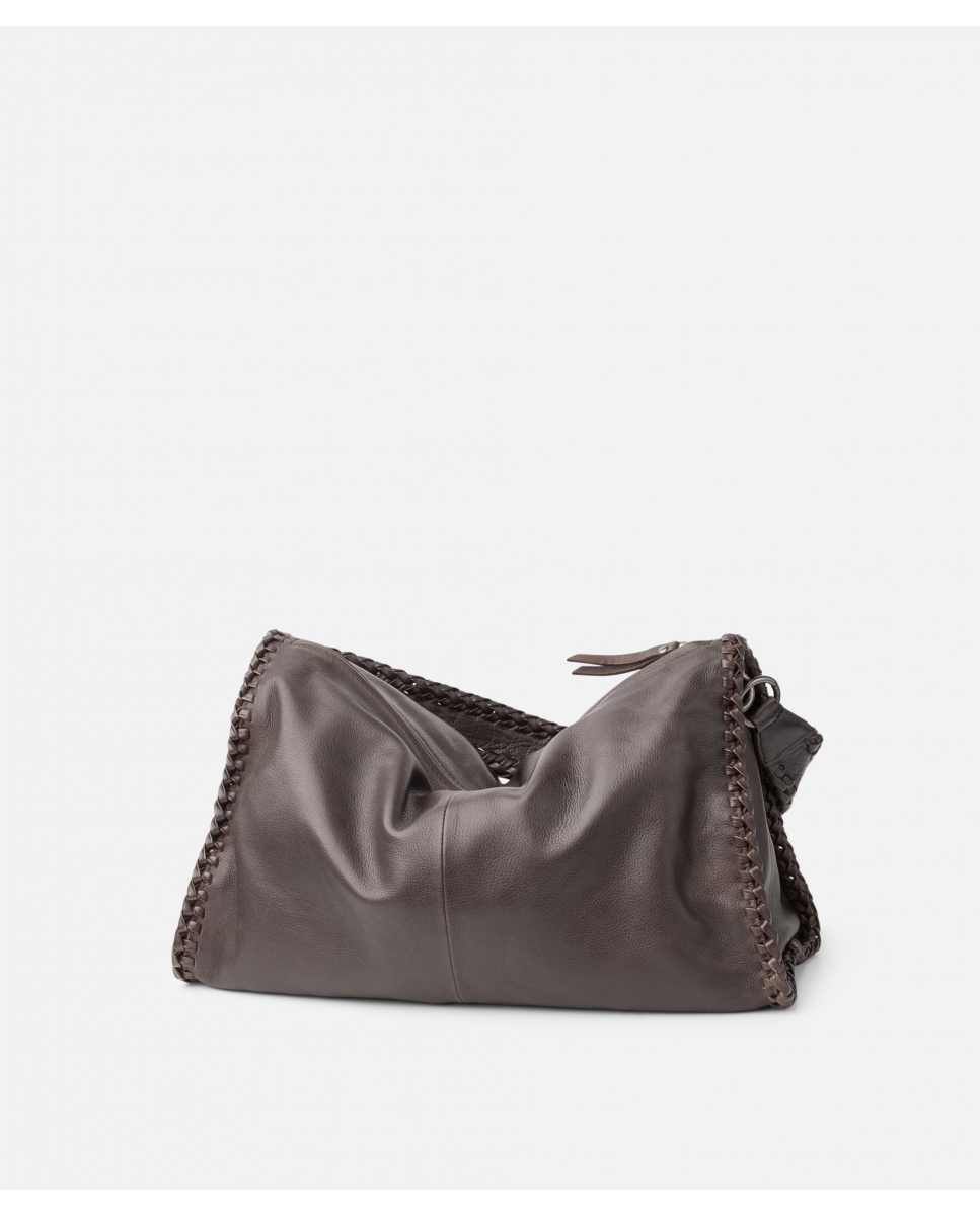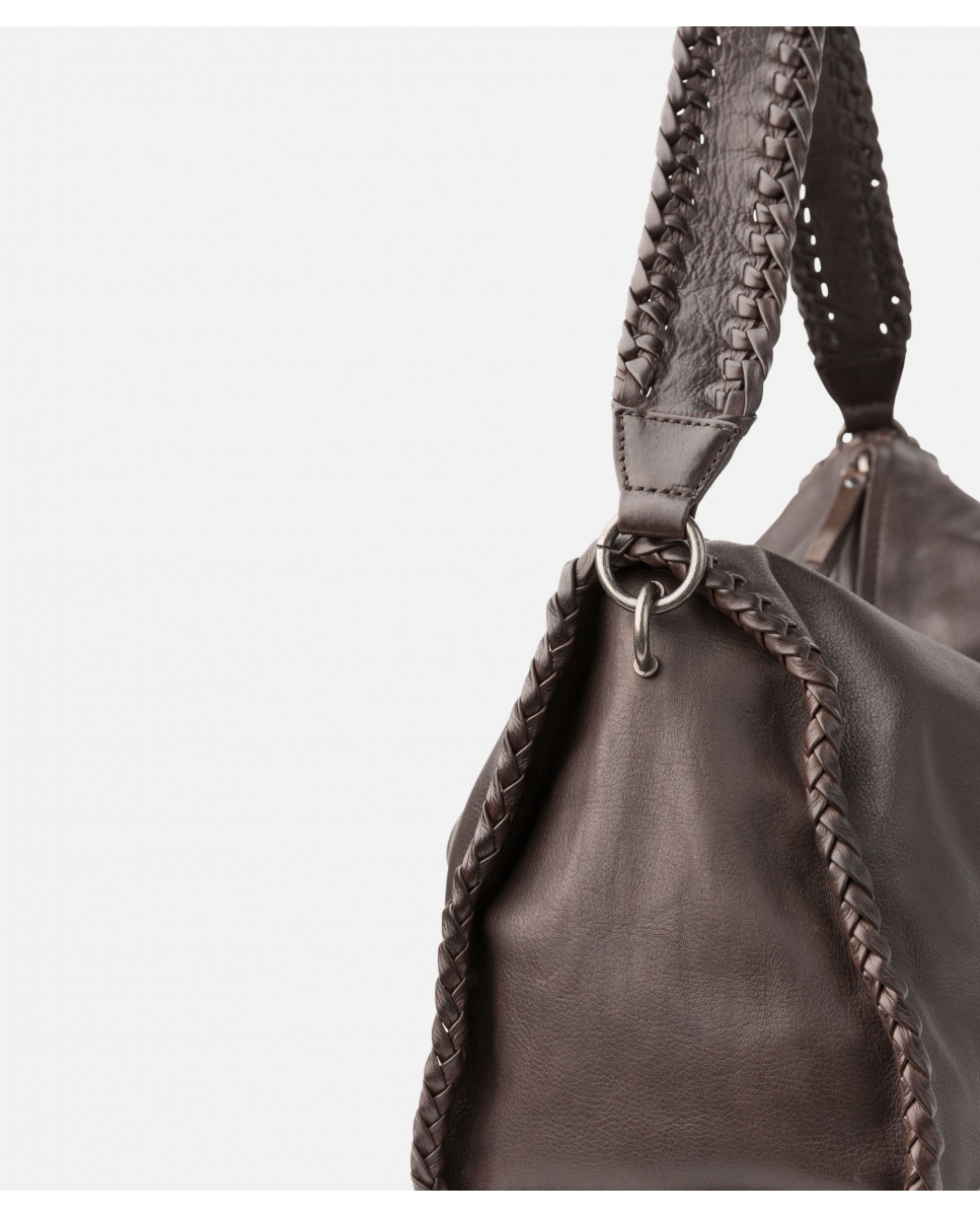 Hobo grande de piel vacuna lavada y trenzada. Asa de hombro. Cierre con cremallera. Bolsillos internos. Forro de algodon